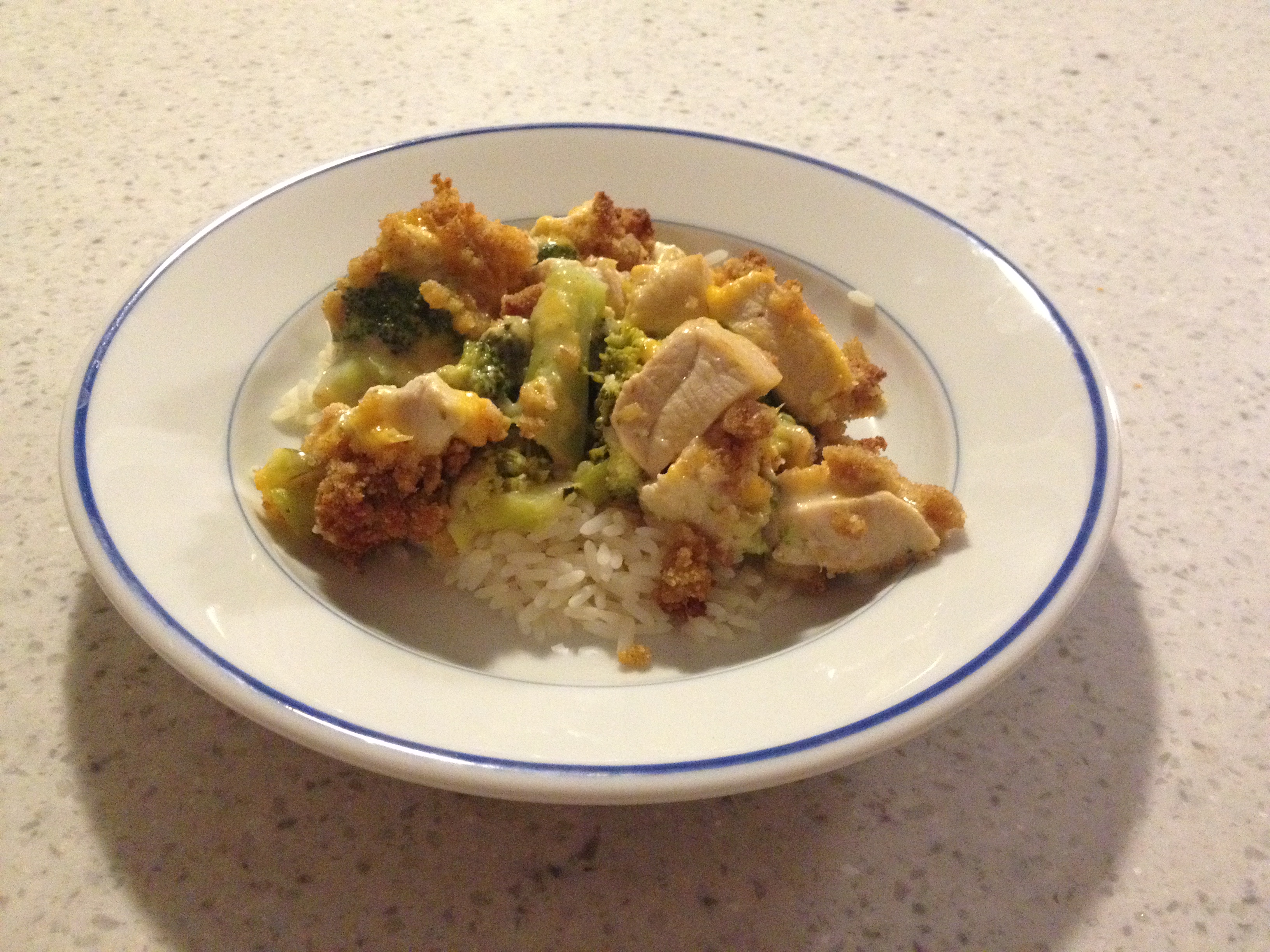 To start, preheat the oven to 450 degrees, and cook the broccoli and chicken. In a bowl combine the soup and milk. Layer the broccoli and chicken and pour the soup mix over the two. Sprinkle on the cheddar cheese. Mix the bread crumbs and butter (I tend to eyeball how much to use) and sprinkle them on top. Bake for about 15 minutes or until golden brown. I like to serve over white rice, but feel free to get creative – it can be a really diverse dish! Broccoli Chicken Divan Happy Eating, XO