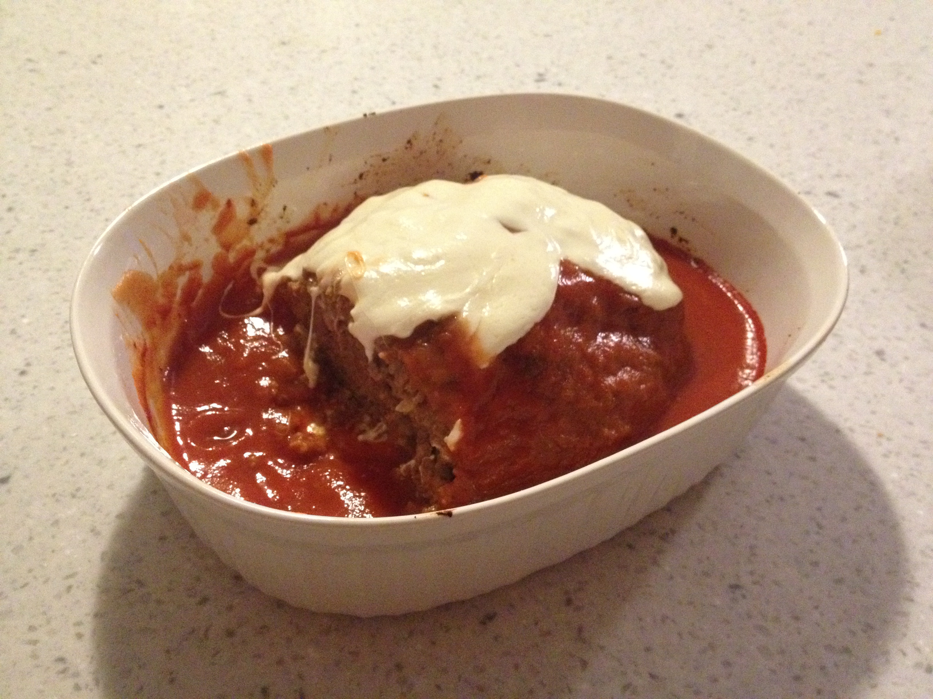 Now that we’re getting in to the thick of cold winter nights, (the forecast said 10 degrees tomorrow night. What?!), I’m really  getting in to the thick of hot, homey, comfort food. And nothing says hot and homey (that’s homey, not horny, people…get your minds out of the gutter) like meatloaf with red sauce.