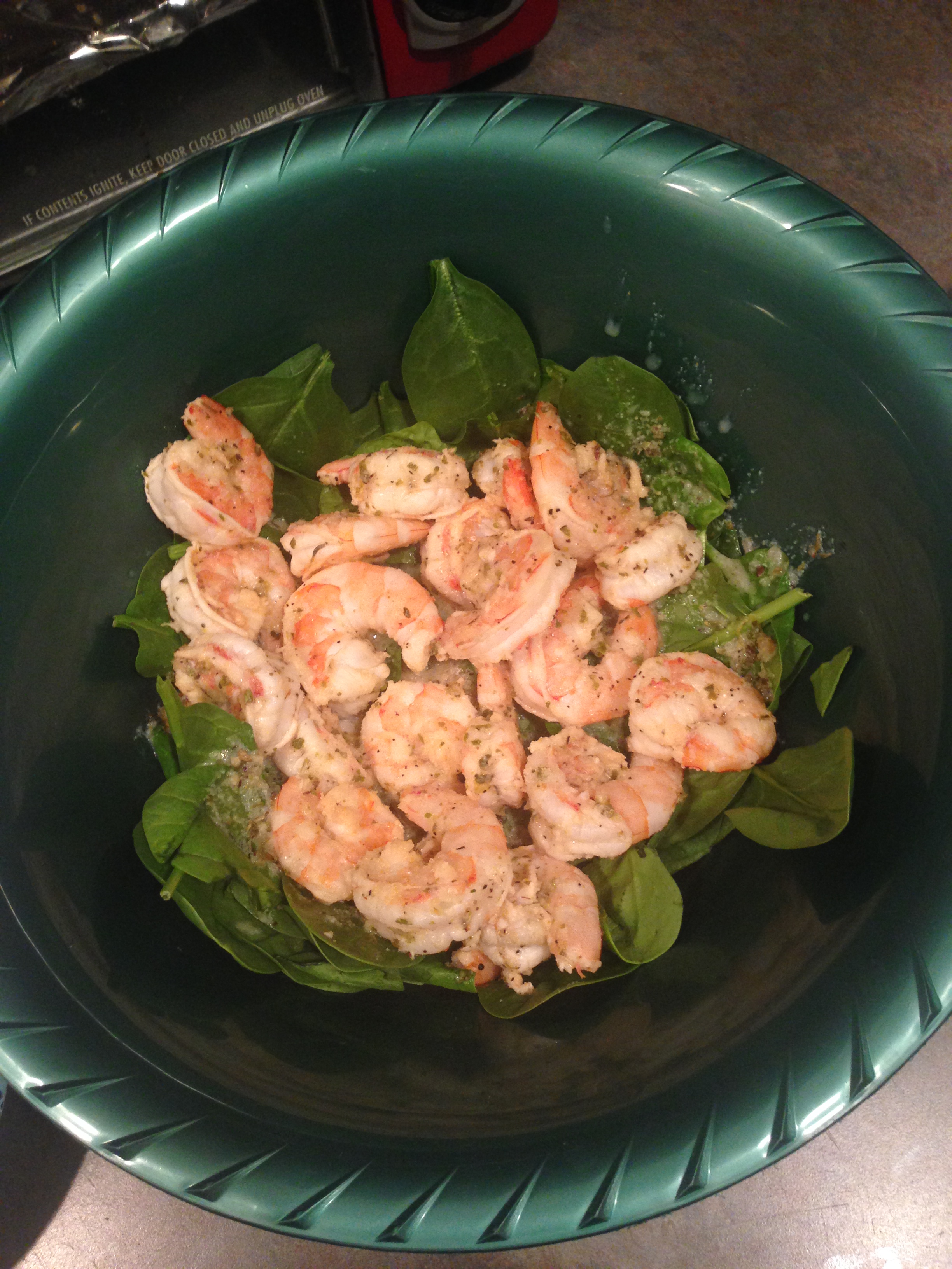 - 1 lb*. of peeled & deveined shrimp (have the guy do it, I wouldn’t know the 1st clue on advising you to do it yourself).