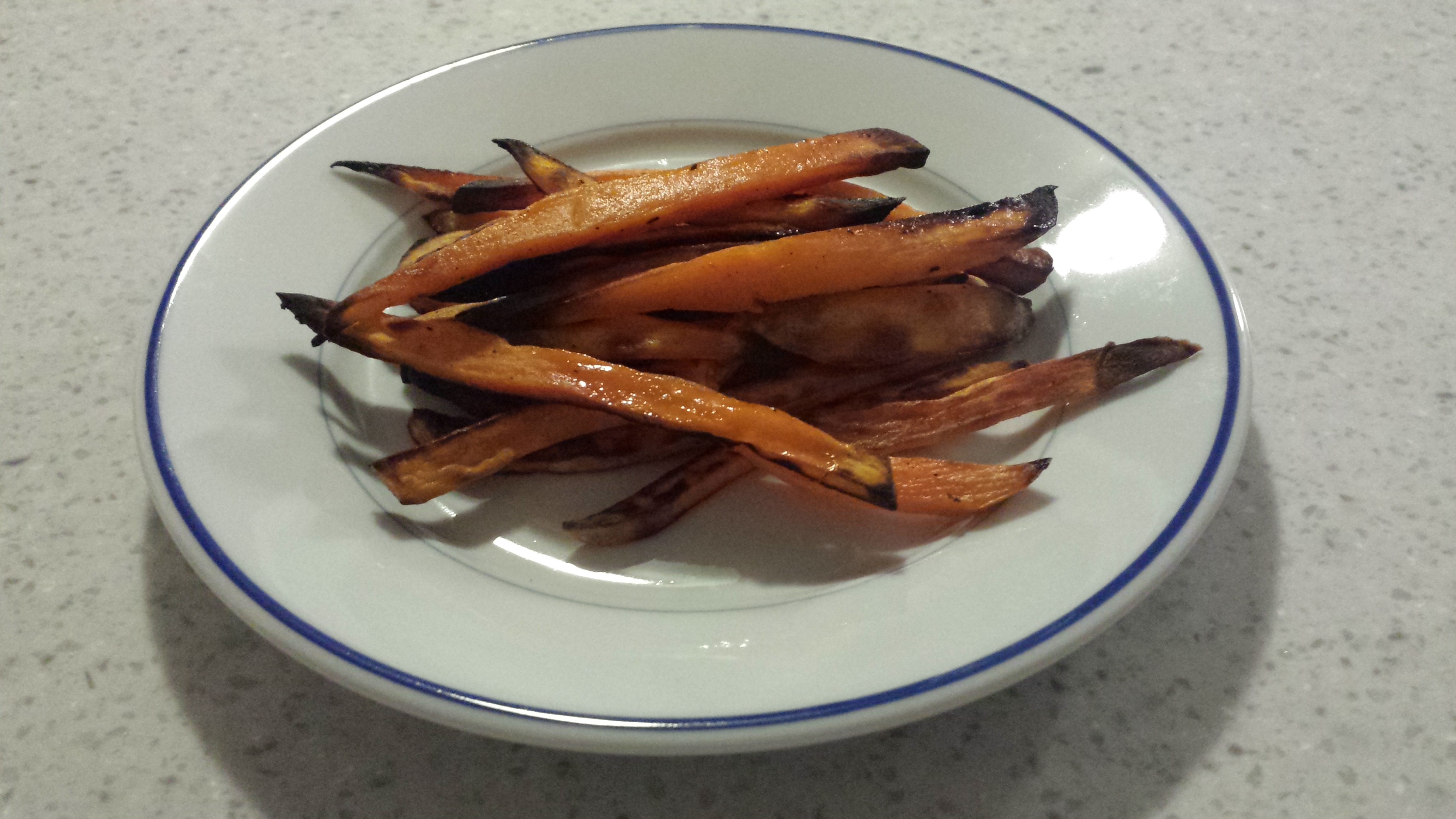 Preheat the oven to 400 degrees (this is important, I tried to cook with my dessert at 350 degrees and the potatoes didn’t cook as fast or get that crisped up edge so even if you have to take shifts with the oven make sure you do it at the 400 degrees, raw potatoes need a high temp). Cut the potatoes in half or quarters (the smaller the pieces the quicker they cook) and place in a bowl with the olive oil, salt, pepper, and garlic; toss until the potatoes are well coated. Transfer the potatoes to a sheet pan and spread out into 1 layer. Roast in the oven for 45 min to 1 hour or until browned and crisp. Flip twice with a spatula during cooking in order to ensure even browning. (For a change I wasn’t lazy and actually did this, I like mine evenly cooked so I made sure to swing open the oven half way through & toss).